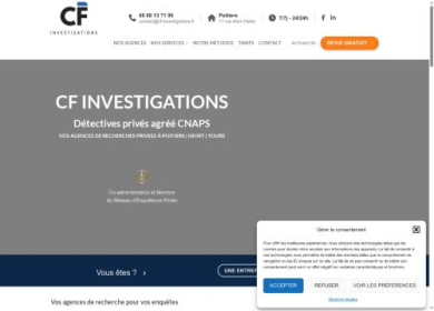 CF Investigations – Enquêtes privées et renseignements sur mesure Basée à Poitiers, Tours et Niort, l’agence CF Investigations met à votre service son...