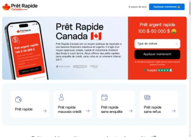 Prét Rapide Canada est un moyen pratique de répondre à vos besoins financiers imprévus et urgents. Il s’agit d’un moyen approuvé, simple, rapide et in...
