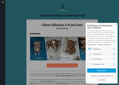 Les chihuahuas LOF de Grisous'Tiny World C'est près de Lens, dans les Hauts-de-France que les chihuahuas de Grisous'Tiny World naissent et passent leu...