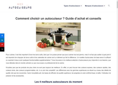 Découvrez Mes-Autocuiseurs, votre référence en autocuiseurs de qualité. Passionnée de cuisine, je vous propose une sélection variée d'appareils, allan...