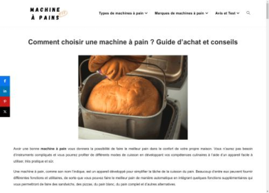 Machine-à-Pains.com est un site dédié aux amateurs de pain maison, offrant des comparatifs des meilleures machines à pain du marché. Vous y trouverez...
