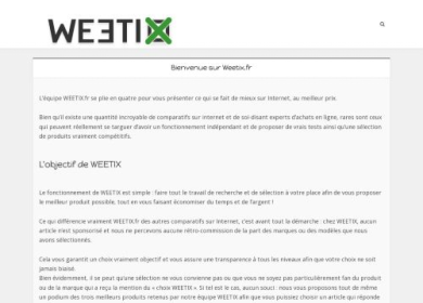 Désormais, lorsque vous voulez faire du shopping en ligne, gagnez du temps et économisez de l'argent en vous servant du guide d'achat Weetix.fr. Weeti...