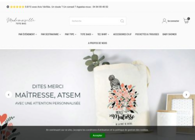 Mademoiselle Tote Bag est une jeune marque française qui propose une large de tote bags, petits sacs 100% coton personnalisable pour le quotidien ou d...