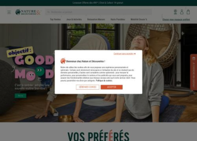 Sixième enseigne préférée des français, Nature & Découvertes dispose d'une boutique en ligne à l'image de ses magasins. Pratique et convivial, vous pr...