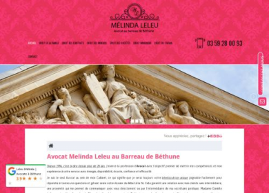 Melinda Leleu est avocate depuis 1996, installée à Béthune (62) et inscrite au barreau de Béthune, elle vous reçoit du lundi au vendredi dans son cabi...
