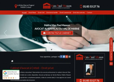 Maître Max Paul MASSON est avocat au barreau du Val de Marne. Le cabinet MASSON qui a été fondé en 1999, est spécialisé en droit pénal, en droit civil...