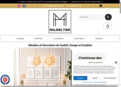 Majdeltier est un concept store spécialisé en mobilier design et décoration intérieure, accessible partout en France grâce à son site e-commerce. La b...