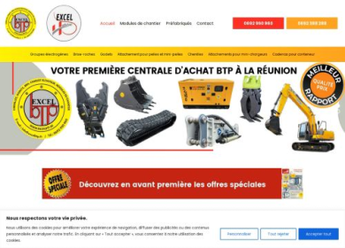 Excel BTP propose: vente de matériel BTP, vente de mini-pelles, vente de brises-roche, vente de godets malaxeur et vente de pinces d'enrochement sur L...