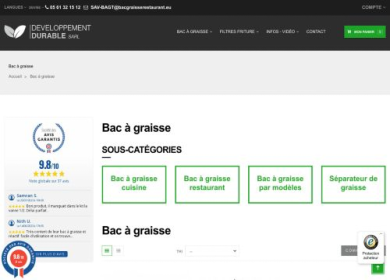 sarl Développement Durable propose une ganme de 6 bacs séparateurs à graisses sous plonge pour la restauration, les traiteurs et les métiers de bouche...
