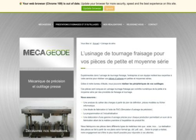 Usinage de précision, usinage de tournage fraisage ou techniques d'outillage de presse, Mécagéode assure la conception de prototypes, de pièces unitai...