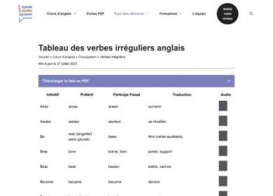 Si vous voulez connaître les verbes irréguliers en anglais, maîtriser leur conjugaison ainsi que leur prononciation, le site ISpeakSpokeSpoken vous se...