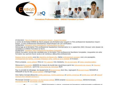 EXEGO est un organisme de formation situé au Havre en Haute-Normandie, qui propose des formations professionnelles qualifiantes et des BTS en alternan...