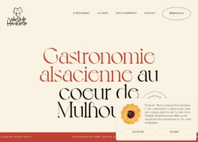 Petit restaurant typique alsacien établit au centre-ville de Mulhouse, dans une rue piétonne, la Winstub Henriette a été reprise en 1996 par la Chef M...