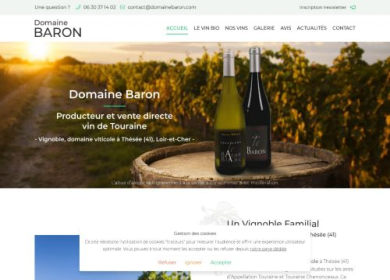 Bienvenue au Domaine Baron ! Ce domaine viticole familial depuis 4 générations vous accueille pour vous faire découvrir ses vins de Touraine et Tourai...