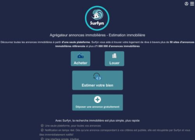 Surfyn est cette plate-forme digitale qui regroupe toutes les annonces immobilières de tous les sites de petites annonces et agences immobilières en F...