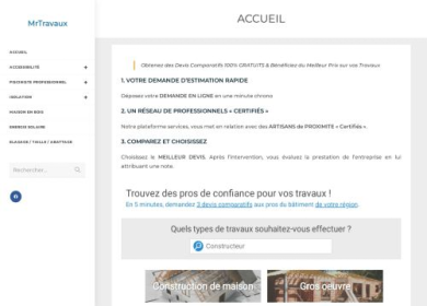 Le site MrTravaux est une plateforme de services spécialisée dans la mise en relation entre particuliers et artisans pour des travaux de rénovation, c...