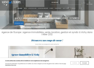 Agence de l'Europe est une agence immobilière dans l'Allier (03), implantée au 12 Avenue Aristide Briand à Vichy, proposant une large gamme de biens i...