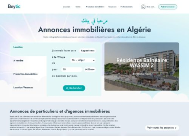 Baytic est une plateforme web proposant des annonces de biens immobiliers en Algérie. Outre les annonces de vente, location d'agent immobilier ou de p...