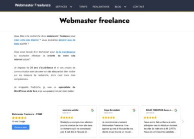 Webmaster freelance propose les prestations suivantes : création de votre site internet professionnel et son référencement. Avoir un site web permet...