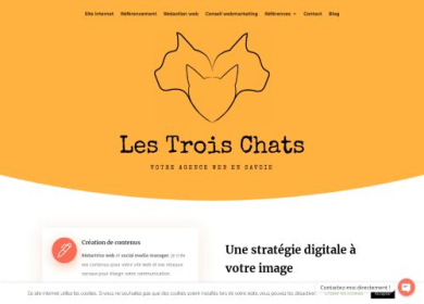 Création de site web, rédaction de contenus, référencement et stratégie webmarketing Les Trois Chats vous accompagne dans la conception de votre site...