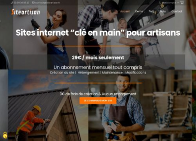 SITEARTISAN propose une offre de site internet par abonnement mensuel pour les artisans. Nous créons et adaptons notre thème de site à la charte graph...