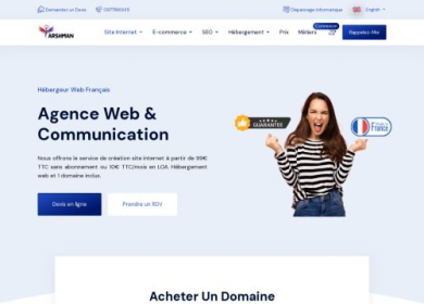 Création site internet avec nom de domaine gratuit et hébergement web gratuit.Promo création de site vitrine 25€/mois tous inclus, wordpress,Prestasho...