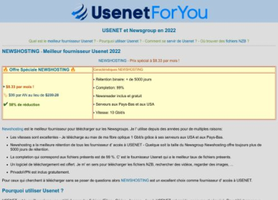 Usenetforyou est un site informatif sur les newsgroups avec des comparatifs des fournisseurs d' accès à Usenet Quels sont les meilleurs fournisseurs...