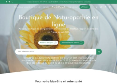 Acerola vous propose de découvrir son large panel de produits et de services : - Vente de produits liés à la naturopathie tels que des compléments al...