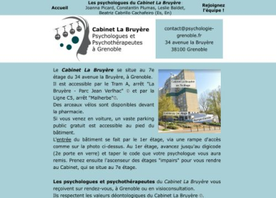 Cabinet de Psychologie Grenoble La Bruyère Regroupement de psychologues utilisant des psychothérapies validées scientifiquement en fonction de votre t...