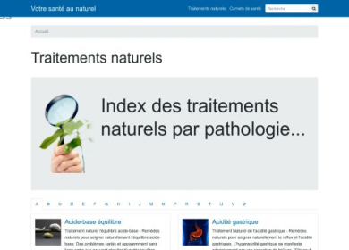 Bienvenue dans le monde des traitements naturels. Le site Internet présente des fiches détaillées de pathologies et les traitements naturels conseillé...