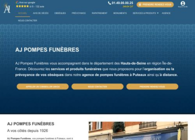 AJ Pompes Funèbres, vos pompes funèbres et marbrerie funéraire à Puteaux. N'hésitez pas à composer le numéro 0149000025 ou à visiter notre site offici...