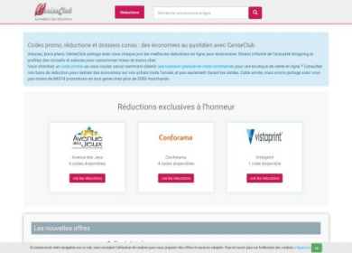CeriseClub est un guide shopping malin qui permet de recevoir du cashback sur ses achats en ligne, de comparer les prix, d'échanger astuces et bons pl...