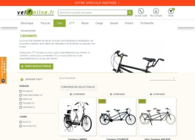La société Velonline vous présente une large gamme de velo tandem à prix malin. beaucoup de marques disponibles ainsi que plusieurs coloris sont là po...