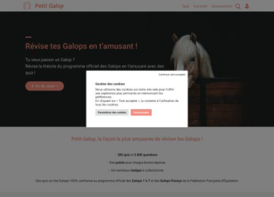 Petit Galop est un site Internet qui a pour mission d'aider les cavaliers à réviser leurs Galops et à développer leurs connaissances en s'amusant grâc...