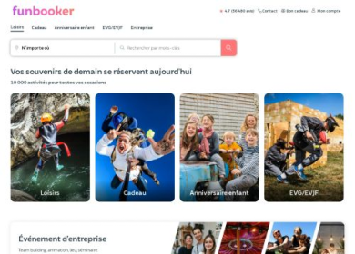 Funbooker est une plateforme de réservation en ligne d'activités. Proposant des centaines d'expériences et loisirs pour tous les âges et tous les goût...