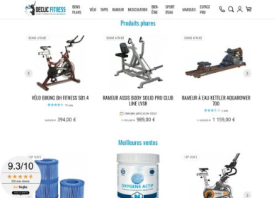 Une boutique de vente en ligne de matériel de fitness à destination des particuliers pour un usage domestique. Vélo elliptique, tapis de course, rame...