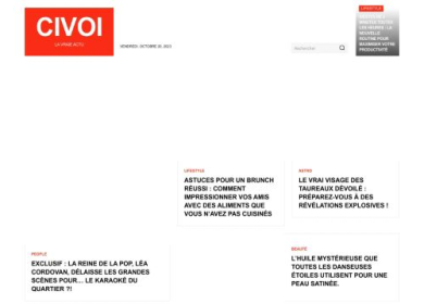 Civoi.fr est le repère incontournable des amateurs d'humour et d'actualité pétillante. Mariant habilement l'humour et l'information, ce site se distin...