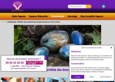 Bienvenue sur ce site entièrement refait en 2018. Il présente des services de voyance par audiotel, qui est un système de numéro surtaxé permettant de...