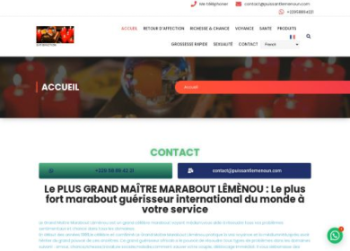 Le Grand Maître Marabout Lêmènou est un grand célèbre marabout voyant médium,vous aide à résoudre tous vos problèmes sentimentaux et chance dans tous...