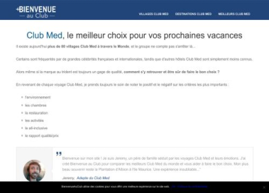 A travers son site Bienvenue au Club, Jeremy vous invite à la découverte des Voyages Club Med, où des vacances de rêve d'un bout à l'autre du monde vo...