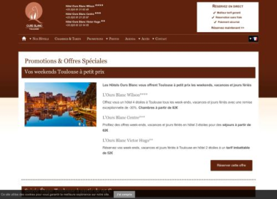 Hotel Ours Blanc Wilson est un Hotel à Toulouse Centre de 2 étoiles, place Wilson, pour vos séjours et weekend à Toulouse . chambres climatisées et...