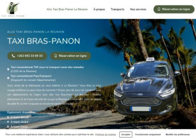 Le site web https://taxibraspanon.fr/ propose des services de taxi pour les voyageurs souhaitant explorer l'île de La Réunion. Les clients peuvent rés...