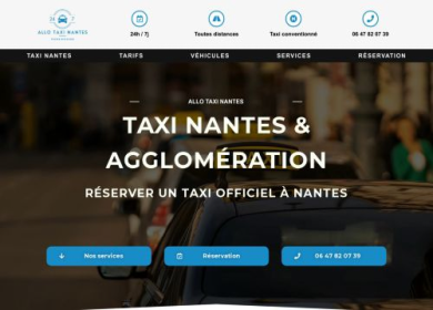 Le design du site web https://allotaxinantes.fr/ est épuré et moderne. Il présente un fond blanc avec des touches de couleurs vives, principalement le...