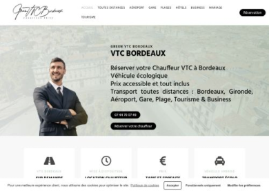 Le site web greenvtcbordeaux.fr est une vitrine élégante et pratique de la société de transport Green VTC. En visitant la page d'accueil, on est imméd...