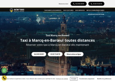 Le site web de Taxi Marcq-en-Baroeul, accessible via l'adresse https://taximarcqenbaroeul.fr/, propose une interface simple et claire, avec une image...