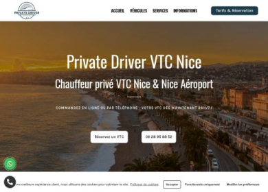 Private Driver VTC Nice est un site web proposant des services de voitures de tourisme avec chauffeur (VTC) dans la région de Nice et les villes envir...