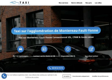 TaxiMontereau.fr est un site web dédié à la réservation de taxis dans la région de Montereau, en France. Le site présente un design simple et épuré, f...