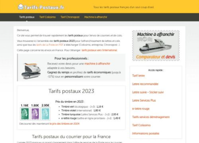 Tarifs-postaux.fr permet de trouver d'un seul coup d'oeil les tarifs officiels de la Poste pour les courriers, colis (colissimo), chronopost pour les...