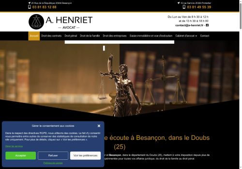 A. Henriet, avocat en droit du travail, contrat de travail, droit de la famille, divorce, garde alternée, droits des successions, droit des entreprises, droit immobilier et saisie immobilière dispose d'un cabinet d'avocat prête à vous recevoir à Besançon et Pontarlier. Pour plus d'information, composez le 03 81 49 55 39 .