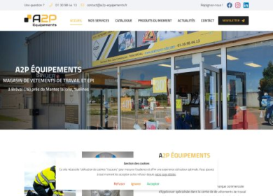 A2P Equipements est un magasin spécialisé dans la vente de tenues et vêtements de travail près de Mantes la Jolie (78) à Bréval. Retrouvez des vêtements adaptés à tous les secteurs d'activité : métiers agro alimentaires, BTP, industrie… Vente également d'accessoires, produits d'hygiène, entretien, service de flocage de vêtements.